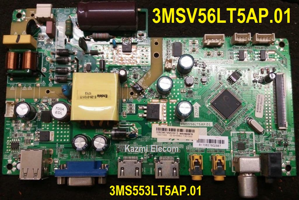 3MSV56LT5AP.01 is a universal LCD/LED Board that has Full HD resolution Supported up to 1920×1080 but is the best fit for HD panels. It is a combo board means the main power supply, ATV board, and LED backlight driver board are built in a single PCB. 3MSV56LT5AP firmware files are given below for the technician’s support.