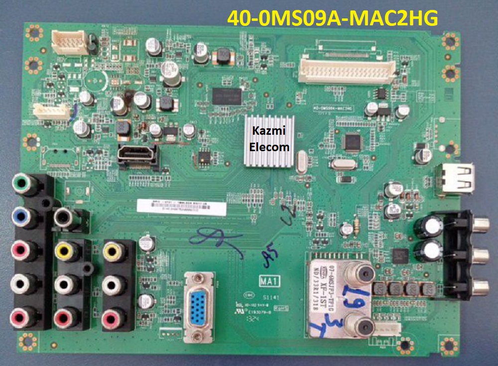 40-0MS09A-MAC2HG is a simple ATV Driver Motherboard designed for LCD/LED TVs. This board is suitable for the Asia Pacific and the Middle East markets. It is designed to support Full HD LCD/LED Panel Screens. This is a Non-Combo Board. The main power module and LED Backlight Inverter Circuit module are required separately but ATV Card is built into this motherboard. This board has all the features and connectivity ports as per the latest requirements like HDMI input, USB interface, PC input, Component Input, TV, and Scart.