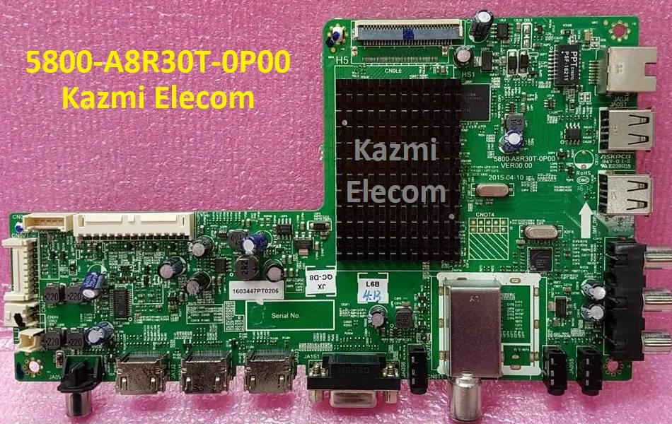 5800-A8R30T-0P00 is a non-combo LED FHD Smart TV Board. It has a Full HD resolution of 1920×1080 and a Refresh Rate is 50 hertz. It has 3 HDMI ports to connect a set-top box, Blu-Ray players, and gaming consoles, and 2 USB ports to connect hard drives and other USB devices and play multimedia as well. It has Dolby DTS Support, 20 Watts sound output, and HDR Display viewing. 5800-A8R30T-0P00 can support Smart TV Features, such as inbuilt smart applications.