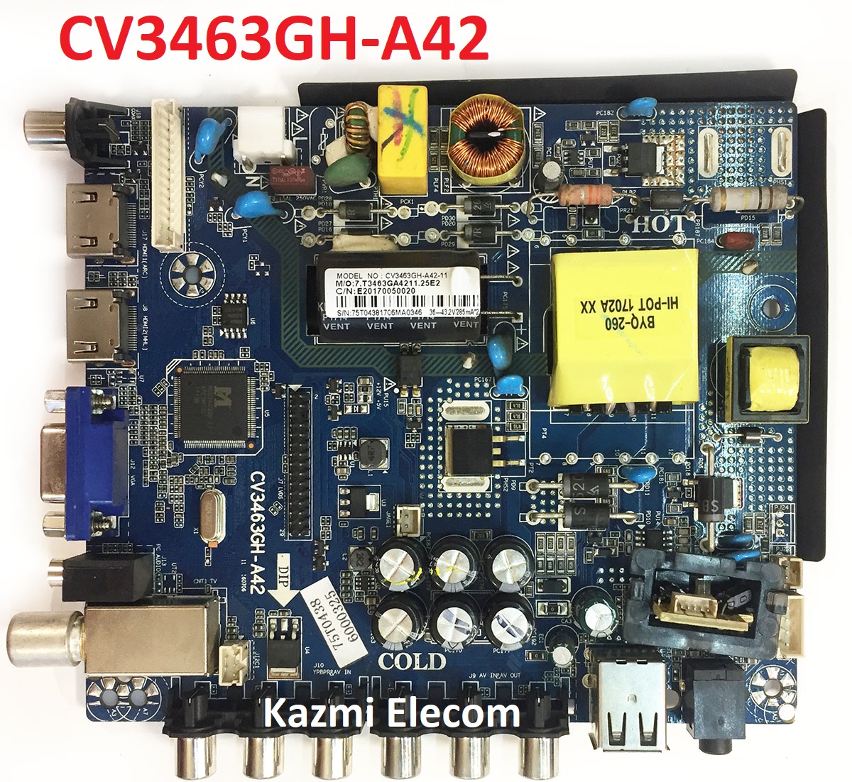 CV3463GH-A42 is a simple ATV Driver Motherboard designed for LCD/LED TVs. It is designed to support Full HD LCD/LED Panel Screens. This board is suitable for the Asia Pacific and the Middle East markets.This is a three in one Combo Board. The main power module and LED Backlight Inverter Circuit module and ATV Card are builtin into this motherboard. This board has all the features and connectivity ports as per the latest user requirements like HDMI input, USB interface, PC input, Component Input, TV, and Scart. Its USB interface can be used for updating software/firmware and for playing multimedia files as well. It can also support Earphone output. CV3463GH-A42 firmware files are given below for the technician’s support.