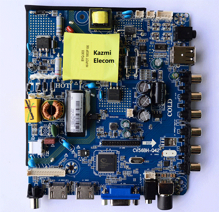 CV56BH is a simple ATV Driver Motherboard designed for LCD/LED TVs. This Board is suitable for the Asia Pacific and the Middle East markets. This Combo Board has the integration of the main power module, LED Backlight Inverter Circuit, and ATV Card in a single piece of a motherboard. This has all the features as per the latest requirements like HDMI input, USB interface, PC input, Component Input, TV, and Headphone jack.