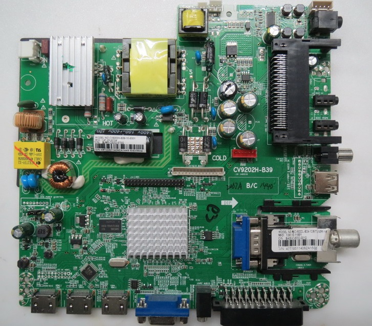 CV9202H-B39 is a simple ATV Driver Motherboard designed for LCD/LED TVs. CV9202H_B39 board is suitable for the Asia Pacific and the Middle East markets.CV9202H.B39 is a Combo Board. The main power module, LED Backlight Inverter Circuit, and ATV Card are built into the motherboard.