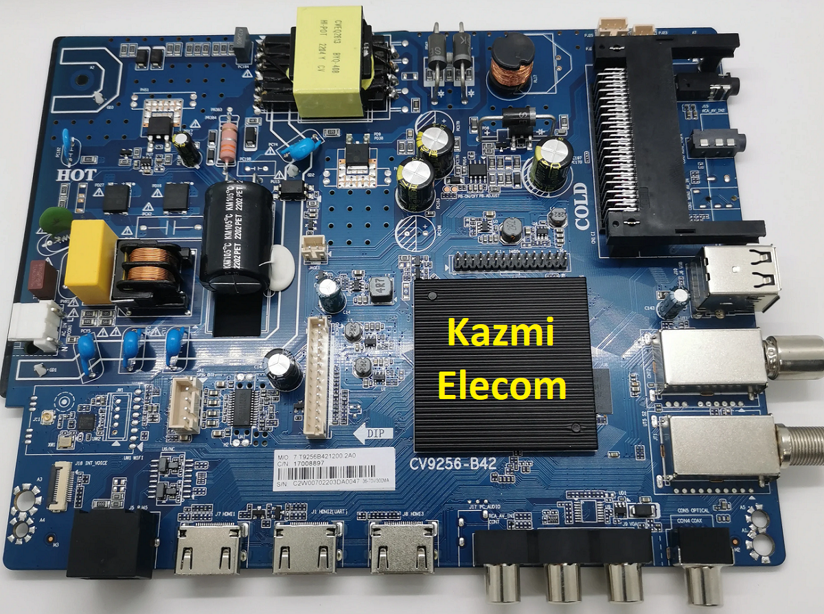 CV9256-B42 is an Android network driver universal board with an FHD resolution of 1920×1080. This is a digital and analog TV control board, which is suitable for the European, and Australian markets. CV9256_B42 has a powerful wifi system. Smart FHD TV With Android Platform and great features to entertain Full HD Wide Screen with better-to-work SMART. CV9256 B42 Smart Board has multiple ports A/V, USB interface Ports, and many HDMI ports as well in addition to VGA and Earphones. CV9256.B42 has a LAN/RJ45 Connector interface port also for the wired internet network.