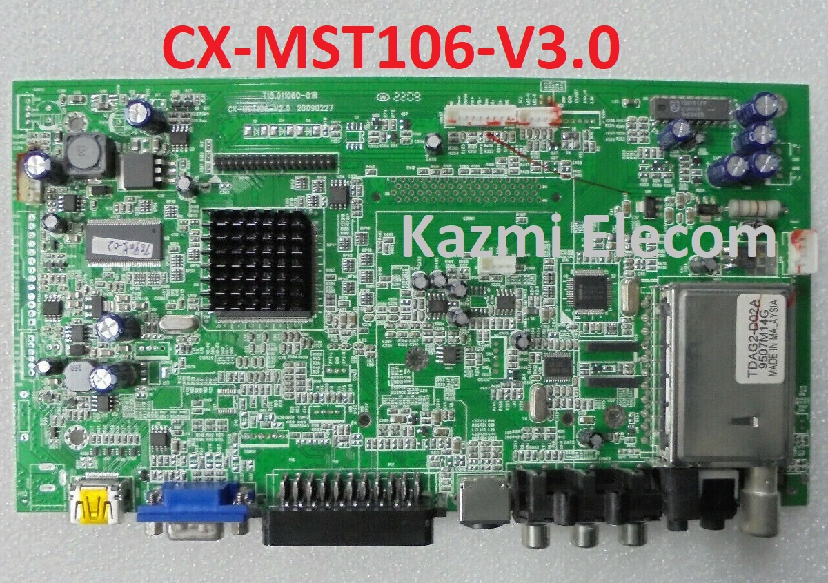 CX-MST106-V3.0 is a simple ATV Driver Motherboard designed for LCD/LED TVs. This board is suitable for the Asia Pacific and the Middle East markets. It is designed to support Full HD LCD/LED Panel Screens. This is a Non-Combo Board. The main power module and LED Backlight Inverter Circuit module are required separatley but ATV Card is builtin into this motherboard. This board has all the features and connectivity ports as per the latest requirements like HDMI input, USB interface, PC input, Component Input, TV, and Scart. Its USB interface can be used for updating software/firmware and for playing multimedia files as well. It can also support Earphone output. CX-MST106-V3.0 firmware files are given below for the technician’s support.