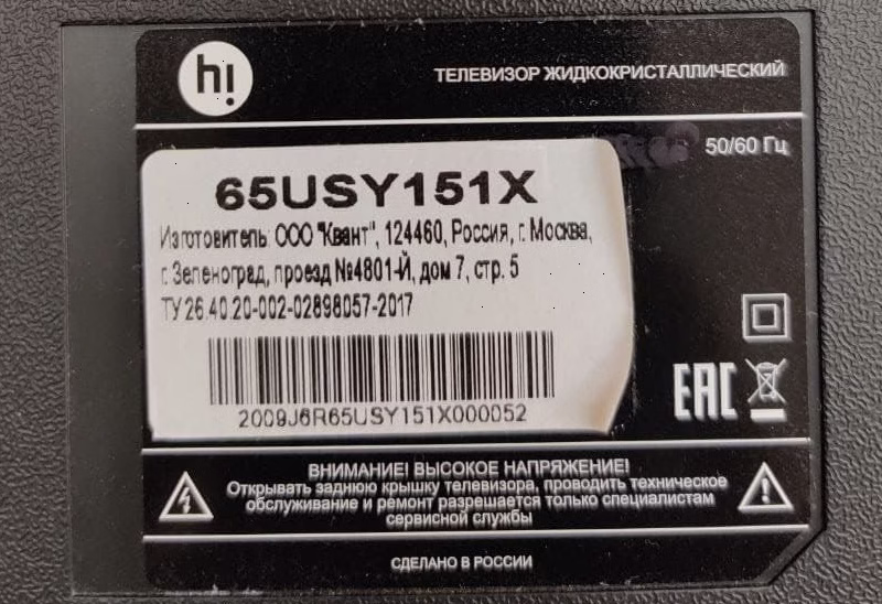 HI 65USY151X is an Ultra HD (4K) LED TV 65 inch that is equipped with interfaces for connecting game consoles, speakers, and media players. A Bluetooth module is available for wireless synchronization with smartphones. The device supports Smart TV technology. The TV can be placed on a stand or mounted on a wall using a standard VESA 400×200 mount. The built-in Wi-Fi module provides high-speed Internet access for watching new movies and TV series. A special blocking feature is used to protect your children from unwanted content.