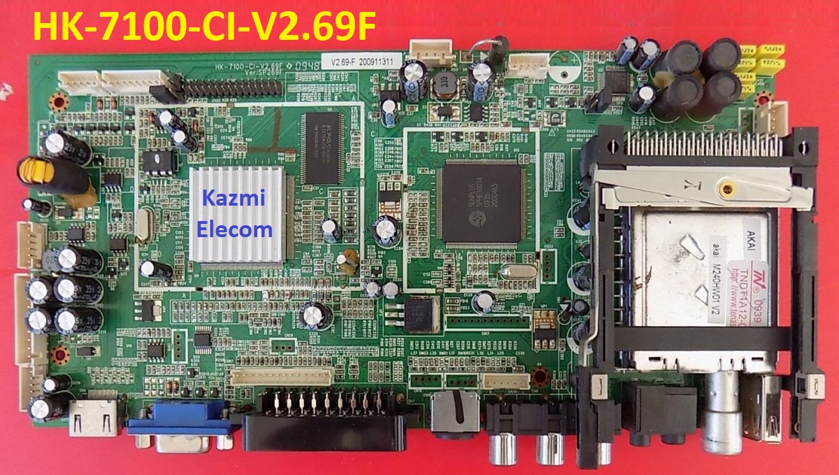 HK-7100-CI-V2.69F is a simple ATV Driver Motherboard designed for LCD/LED TVs. This board is suitable for the Asia Pacific and the Middle East markets. It is designed to support Full HD LCD/LED Panel Screens. This is a Non-Combo Board. The main power module and LED Backlight Inverter Circuit module are required separatley but ATV Card is builtin into this motherboard. This board has all the features and connectivity ports as per the latest requirements like HDMI input, USB interface, PC input, Component Input, TV, and Scart. Its USB interface can be used for updating software/firmware and for playing multimedia files as well. It can also support Earphone output. HK-7100-CI-V2.69F firmware files are given below for the technician’s support.