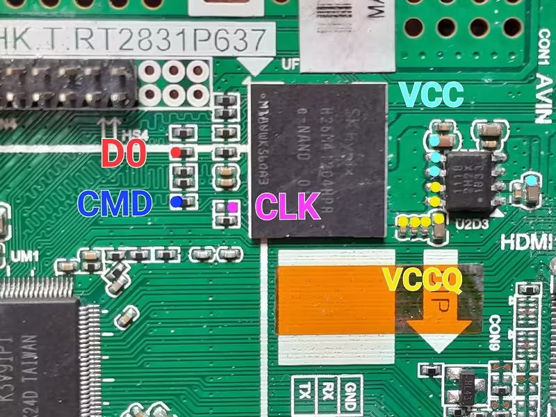 - Note the EMMC Pinouts (D0, CMD, CLK) in the given picture above