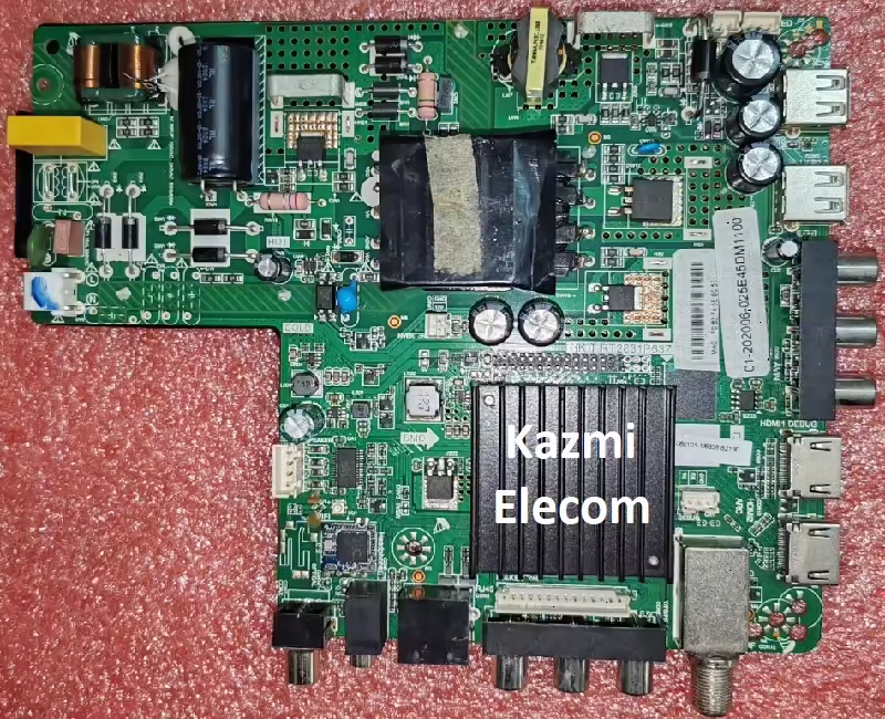 HK.T.RT2831P637 is a universal smart Android LCD LED TV motherboard. This board can be installed with 39-inch to 46-inch screen panels. Its maximum supported screen resolution is 1920×1080 Full High Definition 1080 Pixels. The main processor RTD2831PSA is made by Realtek with Android platform version 7.1. Its RAM capacity is 1 GB, and its storage (ROM) capacity is 8 GB eMMC Flash. This is a Combo three-in-one LCD LED TV driver controller board with an ATV operation system.