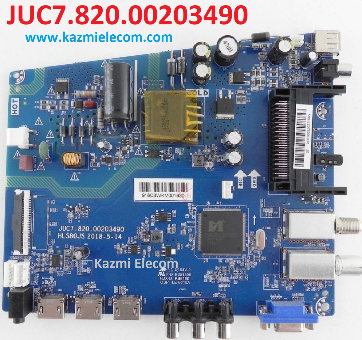 JUC7.820.00203490 is a simple ATV Driver Motherboard designed for LCD/LED TVs. This board is suitable for the Asia Pacific and the Middle East markets. It is designed to support Full HD LCD/LED Panel Screens. This is a Non-Combo Board. The main power module and LED Backlight Inverter Circuit module are required separatley but ATV Card is builtin into this motherboard. This board has all the features and connectivity ports as per the latest requirements like HDMI input, USB interface, PC input, Component Input, TV, and Scart. Its USB interface can be used for updating software/firmware and for playing multimedia files as well. It can also support Earphone output. JUC7.820.00203490 firmware files are given below for the technician’s support.