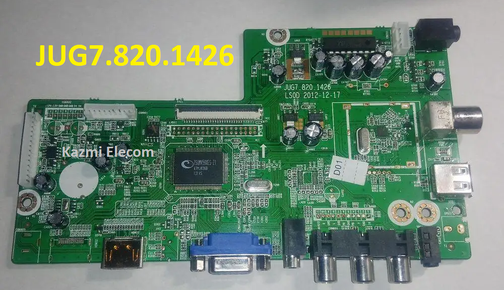 JUG7.820.1426 is a simple ATV Driver Motherboard designed for LCD/LED TVs. This board is suitable for the Asia Pacific and the Middle East markets. It is designed to support Full HD LCD/LED Panel Screens. This is a Non-Combo Board. The main power module and LED Backlight Inverter Circuit module are required separatley but ATV Card is builtin into this motherboard. This board has all the features and connectivity ports as per the latest requirements like HDMI input, USB interface, PC input, Component Input, TV, and Scart. Its USB interface can be used for updating software/firmware and for playing multimedia files as well. It can also support Earphone output. JUG7.820.1426 firmware files are given below for the technician’s support.