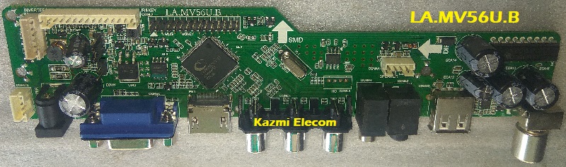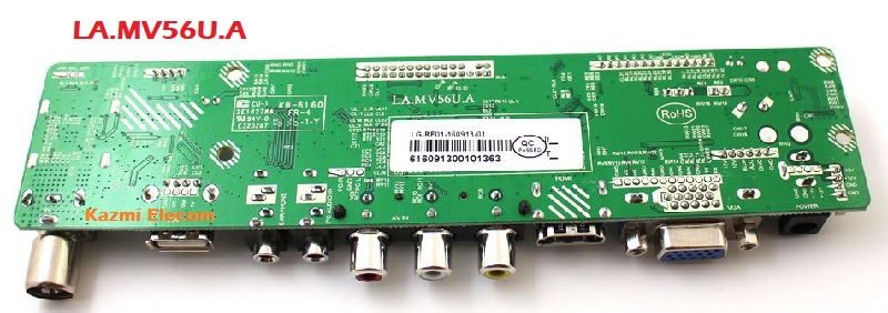 LA.MV56U.A is a flat panel TV control board designed for Asia‐Pacific and Middle-East markets. LA_MV56U_A board has excellent and mature performance. LA-MV56U-A can support LCD and LED panels, the maximum resolution supported is 1920×1080 Full HD. LA MV56U A can drive an LCD or LED panel smaller than 26 inches to get a cost‐effective and high-performance and popular flat-panel analog TV set.