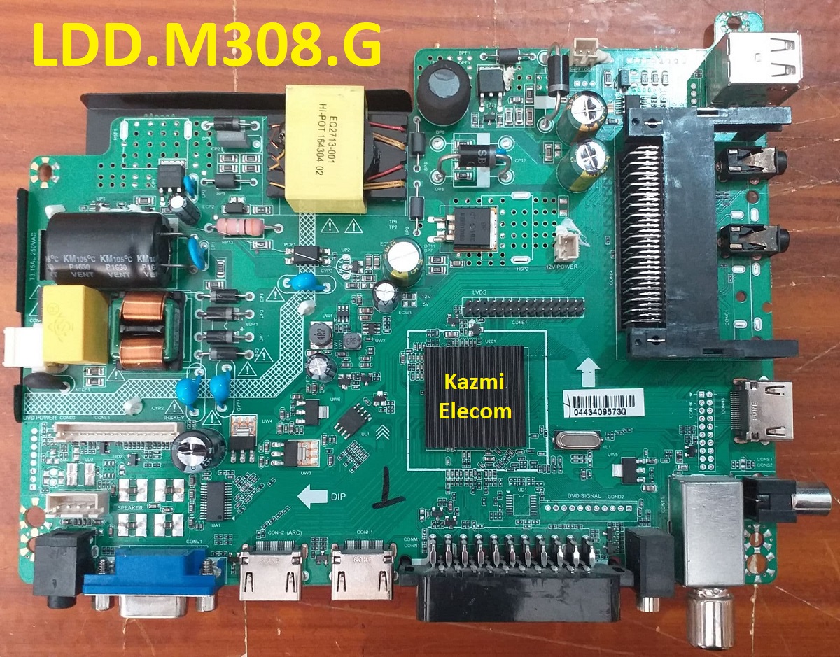 LDD.M308.G is a simple ATV Driver Motherboard designed for LCD/LED TVs. It is designed to support Full HD LCD/LED Panel Screens. This board is suitable for the Asia Pacific and the Middle East markets.This is a three in one Combo Board. The main power module and LED Backlight Inverter Circuit module and ATV Card are builtin into this motherboard. This board has all the features and connectivity ports as per the latest user requirements like HDMI input, USB interface, PC input, Component Input, TV, and Scart. Its USB interface can be used for updating software/firmware and for playing multimedia files as well. It can also support Earphone output. LDD.M308.G firmware files are given below for the technician’s support.