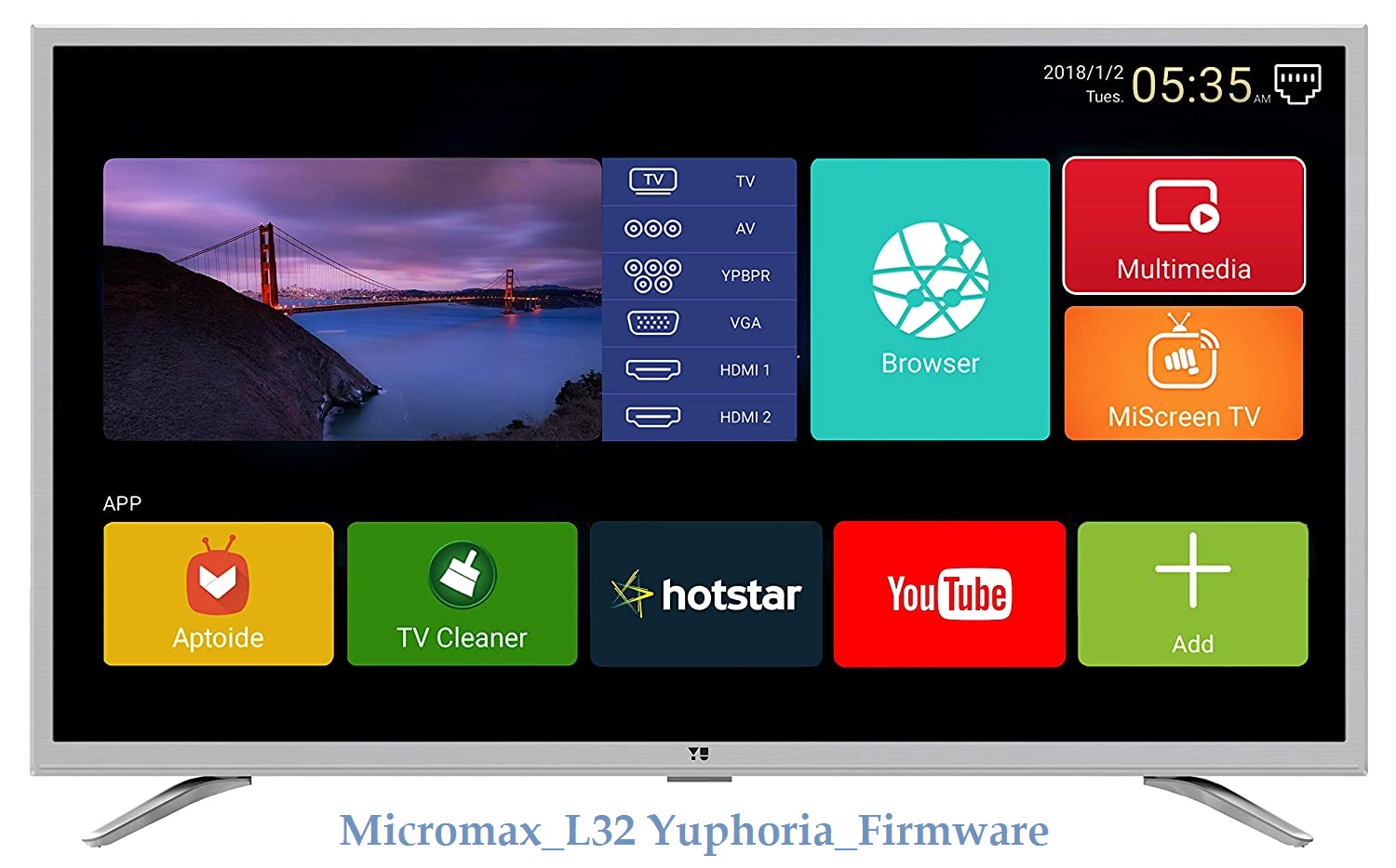 Its Smart TV Features are Android 7.0 Smart TV, 1 GB RAM, 8 GB ROM, Aptoide App Store, and Apps supported by Netflix, Hotstar, YouTube, Eros Now, Sony Liv, and many more. MICROMAX YU 32Yuphoria firmware file is given below for the technician’s support.