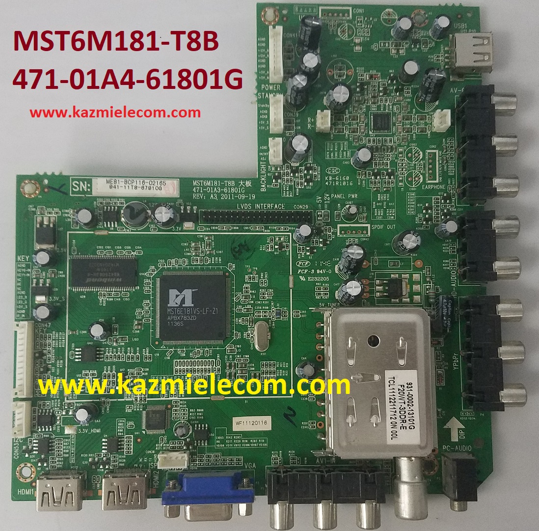 MST6M181-T8B is a simple ATV Driver Motherboard designed for LCD/LED TVs. This board is suitable for the Asia Pacific and the Middle East markets. This is a Non-Combo Board. The main power module and LED Backlight Inverter Circuit module are required seperatley but ATV Card is builtin into this motherboard.