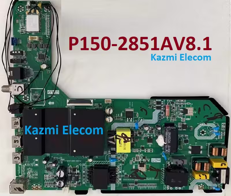 P150-2851AV8.1 is a digital smart UHD LED TV controller driver board. It supports resolutions up to 3840×2160 4K Ultra High Definition 2160 Pixels and is HDR10 supported. This is a Combo three-in-one network Android smart board. The main input power supply module, Sound Card circuit, Cable TV tuner, and LED backlight inverter circuit module are built into a single piece of printed circuit board (PCB). The ROM storage capacity is 16GB (EMMC Nand Flash ) which is enough for the user to install TV applications.