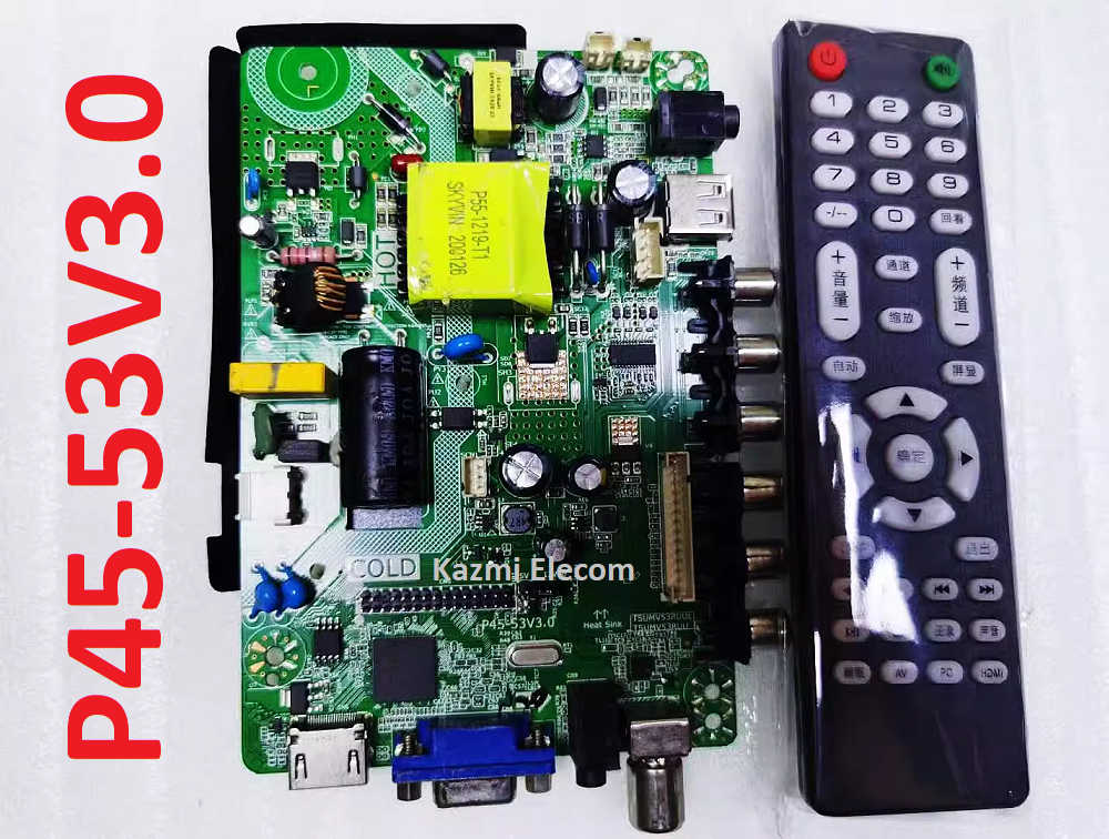 P45-53V3.0 is a simple ATV Driver Motherboard designed for LCD/LED TVs. It is designed to support Full HD LCD/LED Panel Screens. This board is suitable for the Asia Pacific and the Middle East markets.This is a three in one Combo Board. The main power module and LED Backlight Inverter Circuit module and ATV Card are builtin into this motherboard. This board has all the features and connectivity ports as per the latest user requirements like HDMI input, USB interface, PC input, Component Input, TV, and Scart. Its USB interface can be used for updating software/firmware and for playing multimedia files as well. It can also support Earphone output. P45-53V3.0 firmware files are given below for the technician’s support.