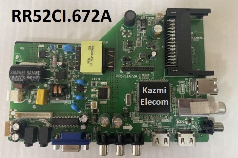 RR52CI.672A is a simple ATV Driver Motherboard designed for LCD/LED TVs. It is designed to support Full HD LCD/LED Panel Screens. This board is suitable for the Asia Pacific and the Middle East markets.This is a three in one Combo Board. The main power module and LED Backlight Inverter Circuit module and ATV Card are builtin into this motherboard. This board has all the features and connectivity ports as per the latest user requirements like HDMI input, USB interface, PC input, Component Input, TV, and Scart. Its USB interface can be used for updating software/firmware and for playing multimedia files as well. It can also support Earphone output. RR52CI.672A firmware files are given below for the technician’s support.