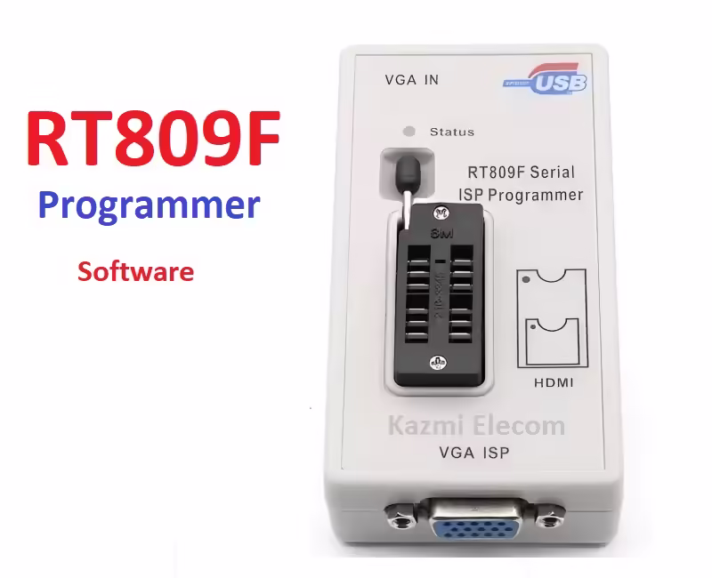 Rt809F is an excellent high-speed programming tool that programs (read and write) all equipment like LCD/LED TVs, laptops, PC motherboards, DVDs, Routers, DVRs, Home appliances, and many other electronic types of equipment. Its VGA ISP is specially designed to program LCD/LED monitors and TVs without opening them with the help of a VGA cable. It can also save a backup of programs. HDMI port supports bigger LED/LCD TVs to Program and backup the software.
