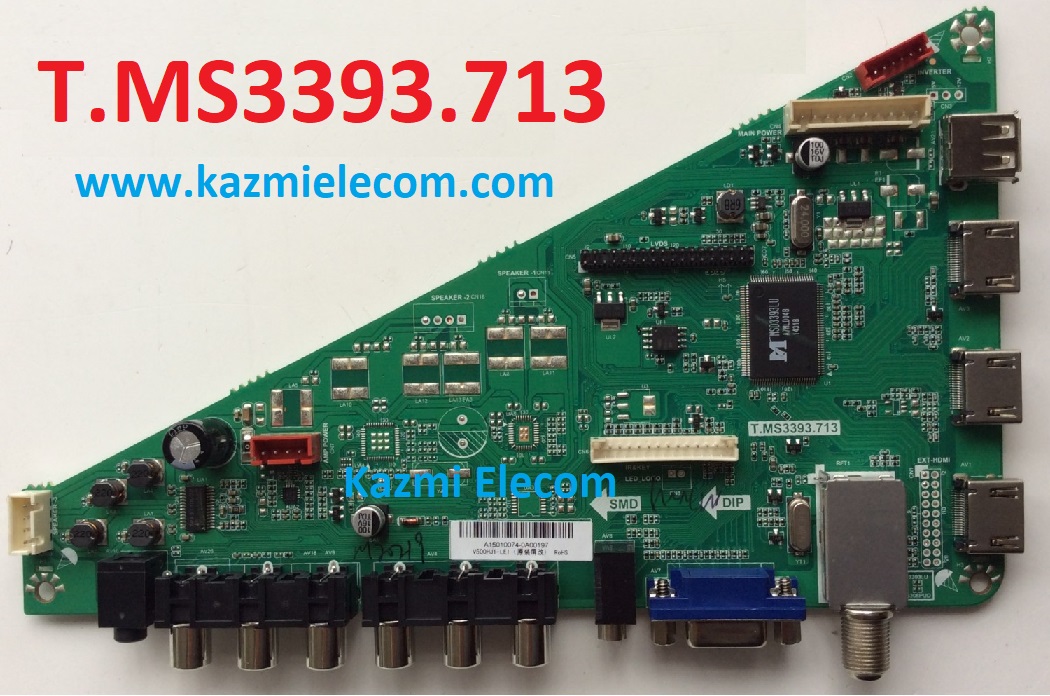 T.MS3393.713 is a simple ATV Driver Motherboard designed for LCD/LED TVs. This board is suitable for the Asia Pacific and the Middle East markets. It is designed to support Full HD LCD/LED Panel Screens. This is a Non-Combo Board. The main power module and LED Backlight Inverter Circuit module are required separatley but ATV Card is builtin into this motherboard. This board has all the features and connectivity ports as per the latest requirements like HDMI input, USB interface, PC input, Component Input, TV, and Scart. Its USB interface can be used for updating software/firmware and for playing multimedia files as well. It can also support Earphone output. T.MS3393.713 firmware files are given below for the technician’s support.