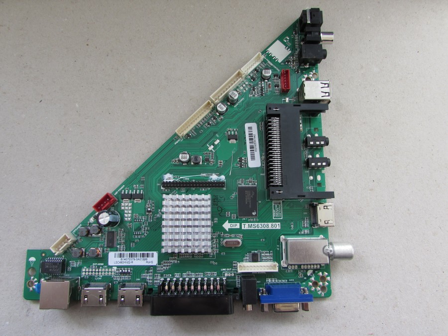 T.MS6308.801 is a simple ATV Driver Motherboard intended for LCD/LED TVs. It is designed to support Full HD LCD/LED Panel Screens. This is a Non-Combo Board. For complete setup, the power input module and LED Backlight Inverter driver Circuit module are required separately but ATV Card is built into this motherboard. This board has all the features and connectivity ports as per the latest requirements like HDMI input, USB interface, PC input, Component Input, TV, and Scart (optional).