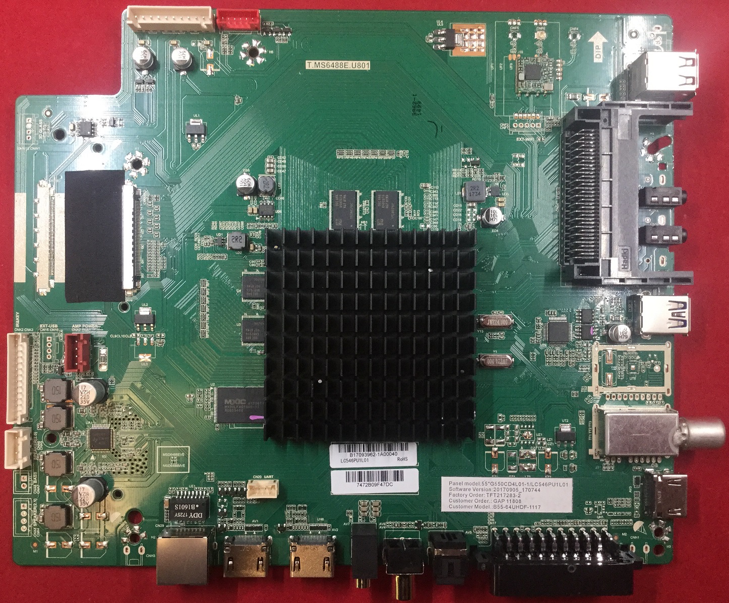 T.MS6488E.U801 is an Intelligent smart 4K network driver LED TV board with a support resolution of 3840×2160. T_MS6488E_U801 is dedicated to 100 Hz screens. It is not a combo board. Smart UHD TV With Android Platform and great features to entertain ultra HD Wide Screen with better to work SMART. T-MS6488E-U801 has the full features of input interface connectivity. It has multiple ports like HDMI, AV, Headphones, VGA interface, USB ports, and RJ45 Ethernet port for wired internet connectivity.