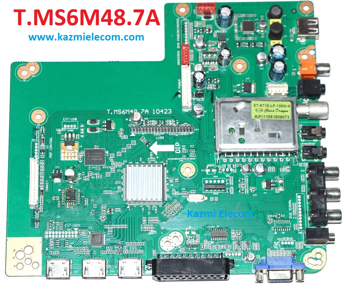 T.MS6M48.7A is a simple ATV Driver Motherboard designed for LCD/LED TVs. This board is suitable for the Asia Pacific and the Middle East markets. It is designed to support Full HD LCD/LED Panel Screens. This is a Non-Combo Board. The main power module and LED Backlight Inverter Circuit module are required separatley but ATV Card is builtin into this motherboard. This board has all the features and connectivity ports as per the latest requirements like HDMI input, USB interface, PC input, Component Input, TV, and Scart. Its USB interface can be used for updating software/firmware and for playing multimedia files as well. It can also support Earphone output. T.MS6M48.7A firmware files are given below for the technician’s support.