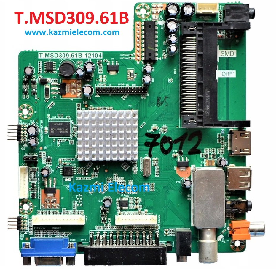 T.MSD309.61B is a simple ATV Driver Motherboard designed for LCD/LED TVs. This board is suitable for the Asia Pacific and the Middle East markets. This is a Non-Combo Board. The main power module and LED Backlight Inverter Circuit module are required seperatley but ATV Card is builtin into this motherboard.