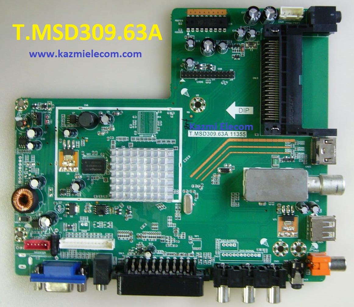 T.MSD309.63A is a simple ATV Driver Motherboard designed for LCD/LED TVs. This board is suitable for the Asia Pacific and the Middle East markets. This is a Non-Combo Board. The main power module and LED Backlight Inverter Circuit module are required seperatley but ATV Card is builtin into this motherboard.