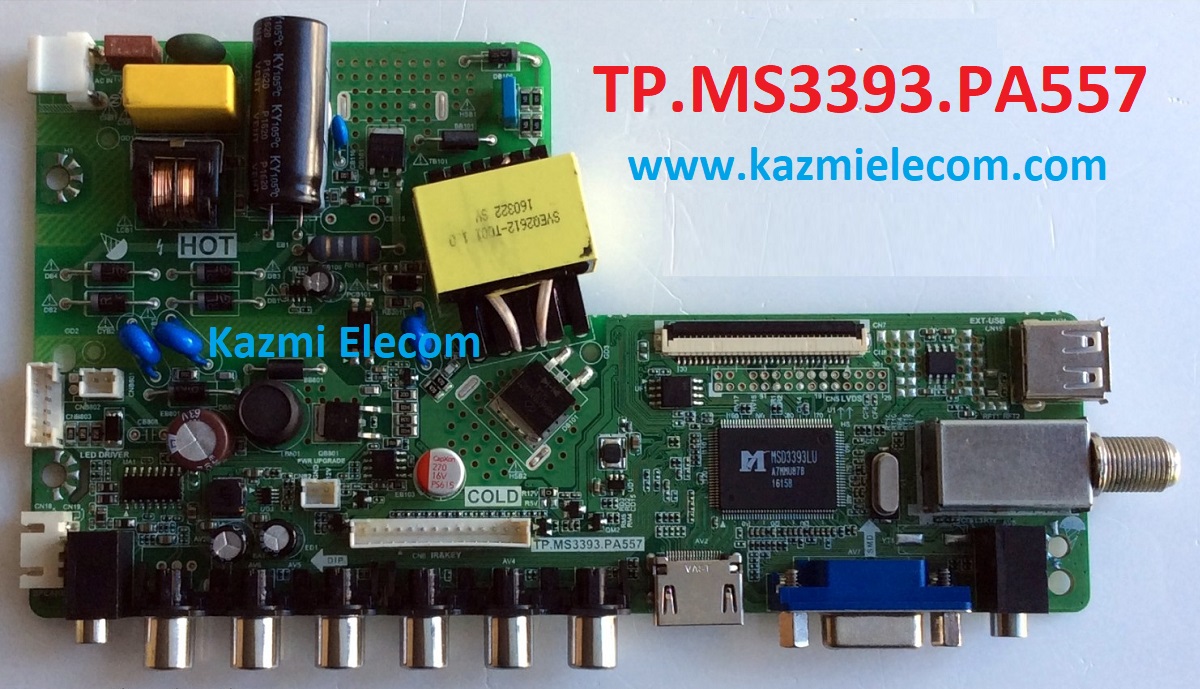 TP.MS3393.PA557 is a simple ATV Driver Motherboard designed for LCD/LED TVs. This board is suitable for the Asia Pacific and the Middle East markets. This is a Combo Board. The main power module and LED Backlight Inverter Circuit module and ATV Card are builtin into this motherboard.