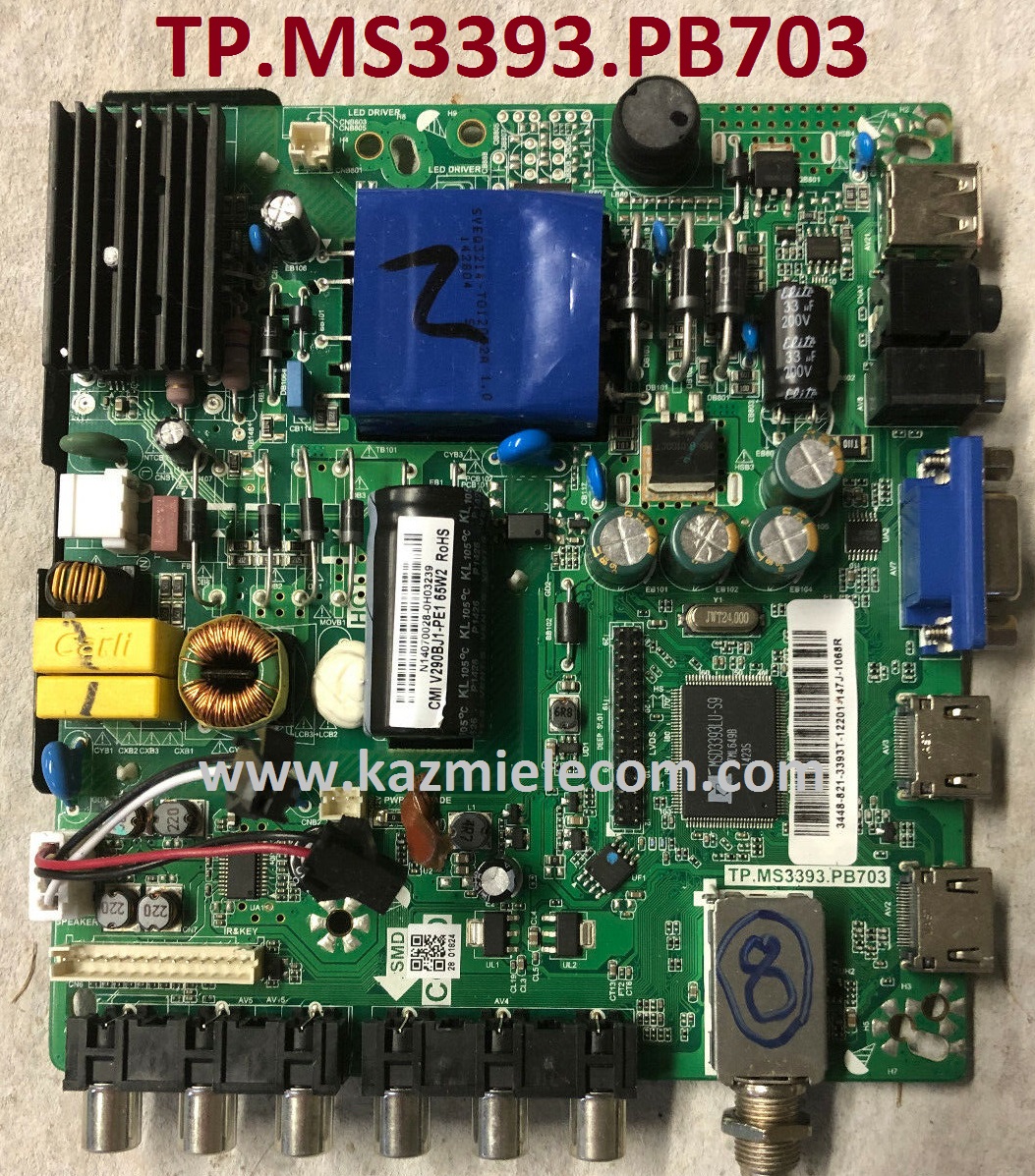 TP.MS3393.PB703 is a simple ATV Driver Motherboard designed for LCD/LED TVs. This board is suitable for the Asia Pacific and the Middle East markets. This is a Combo Board. The main power module and LED Backlight Inverter Circuit module and ATV Card are builtin into this motherboard.