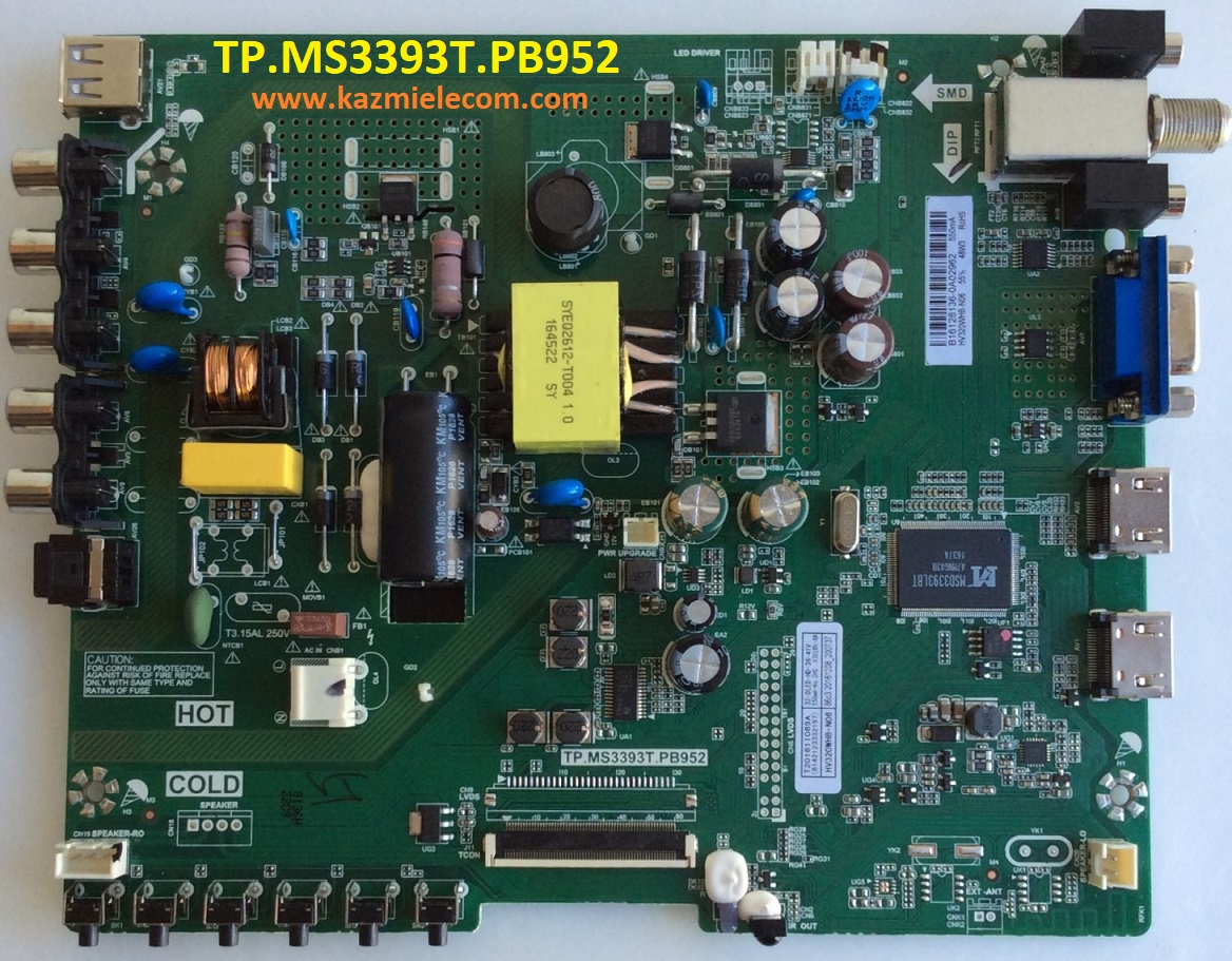 TP.MS3393T.PB952 is a simple ATV Driver Motherboard designed for LCD/LED TVs. This board is suitable for the Asia Pacific and the Middle East markets. This is a Combo Board. The main power module and LED Backlight Inverter Circuit module and ATV Card are builtin into this motherboard.