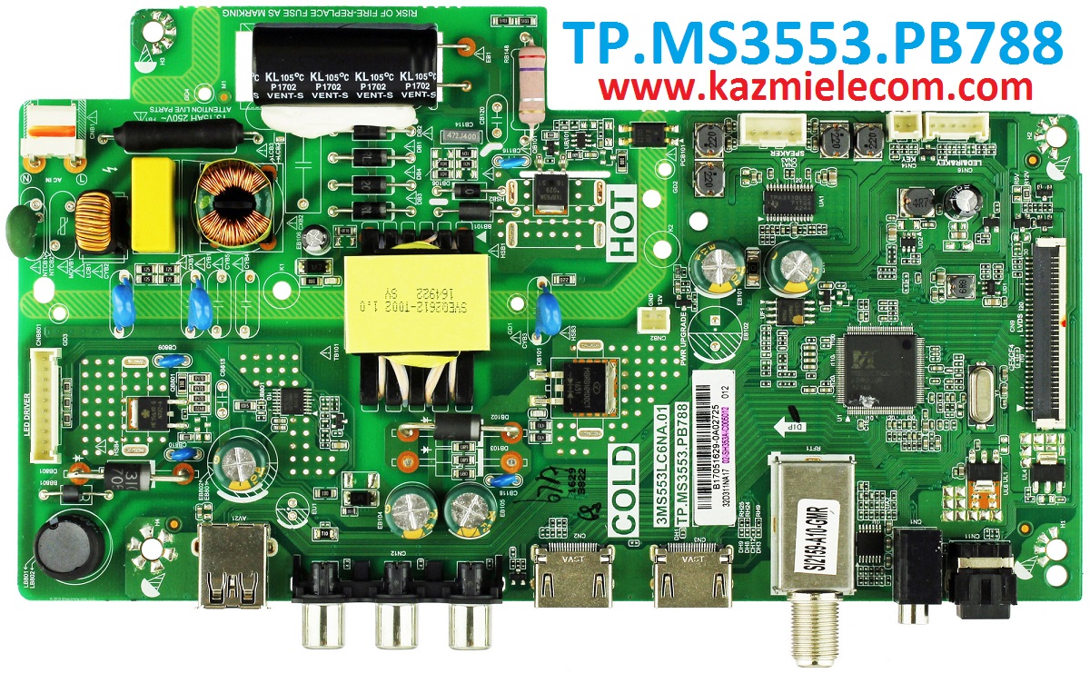 TP.MS3553.PB788 is a simple ATV Driver Motherboard designed for LCD/LED TVs. This board is suitable for the Asia Pacific and the Middle East markets. This is a Combo Board. The main power module and LED Backlight Inverter Circuit module and ATV Card are builtin into this motherboard.