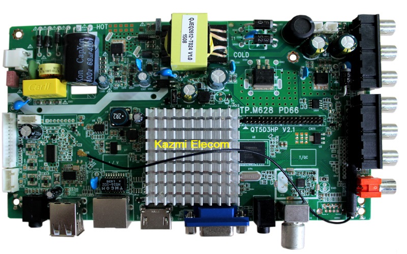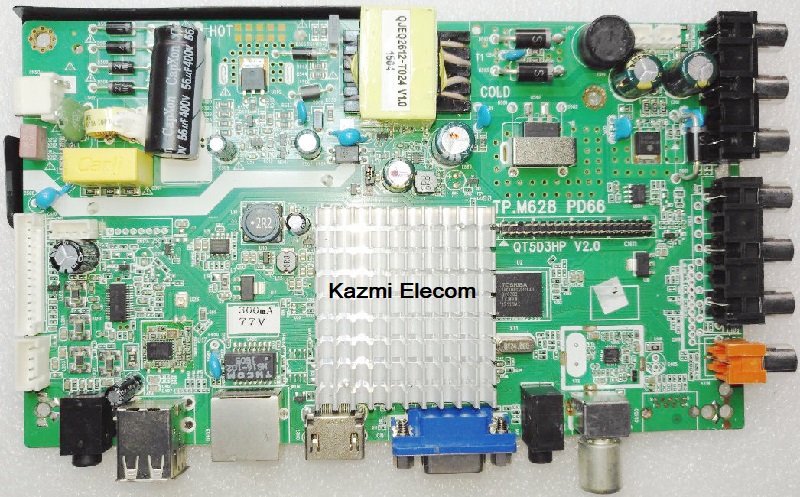 TP.MS628 PD66 QT5D3HP is an Ali Cloud 4 Core network drive Android wifi motherboard with the supported resolution of 1920×1080. TP_MS628_PD66_QT5D3HP has a powerful wireless network wifi system. Smart TV With Android Platform and great features to entertain Full HD Wide Screen with better to work SMART. TP-MS628-PD66 can support up to 28″ to 32″ screens. TP MS628 PD66 QT5D3HP has multiple input ports such as HDMI, Dual USB, VGA interface, Dual AV, and RJ45 Ethernet connector for wired internet connectivity.