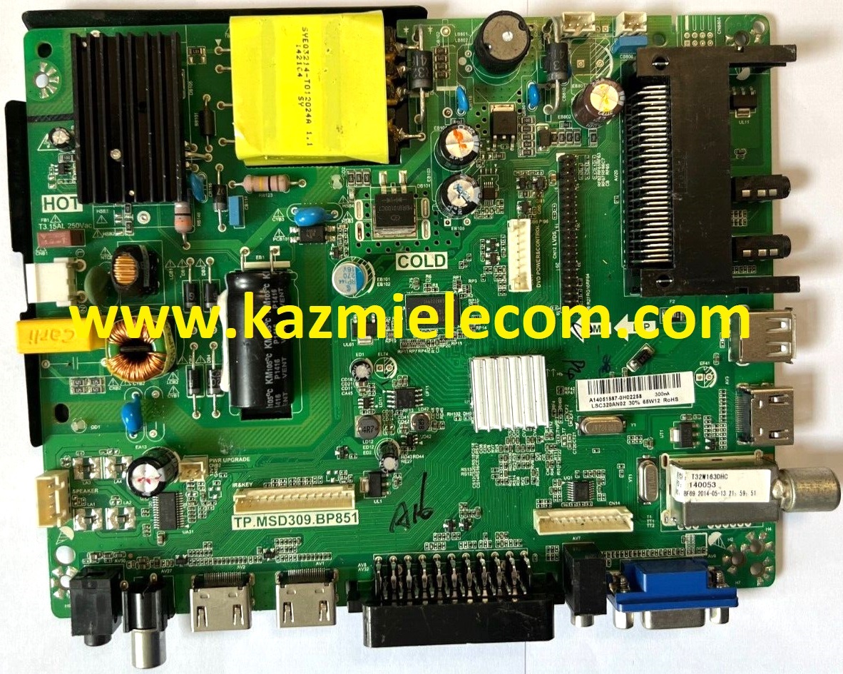 TP.MSD309.PB851 is a simple ATV Driver Motherboard designed for LCD/LED TVs. This board is suitable for the Asia Pacific and the Middle East markets. This is a Combo Board. The main power module and LED Backlight Inverter Circuit module and ATV Card are builtin into this motherboard.