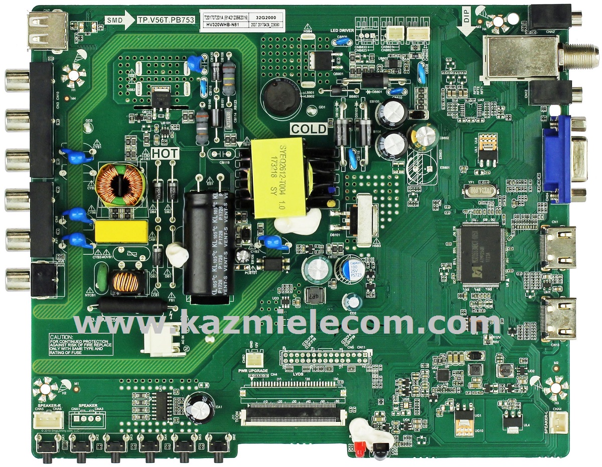 TP.V56T.PB753 is a simple ATV Driver Motherboard designed for LCD/LED TVs. This board is suitable for the Asia Pacific and the Middle East markets. This is a Combo Board. The main power module and LED Backlight Inverter Circuit module and ATV Card are builtin into this motherboard.
