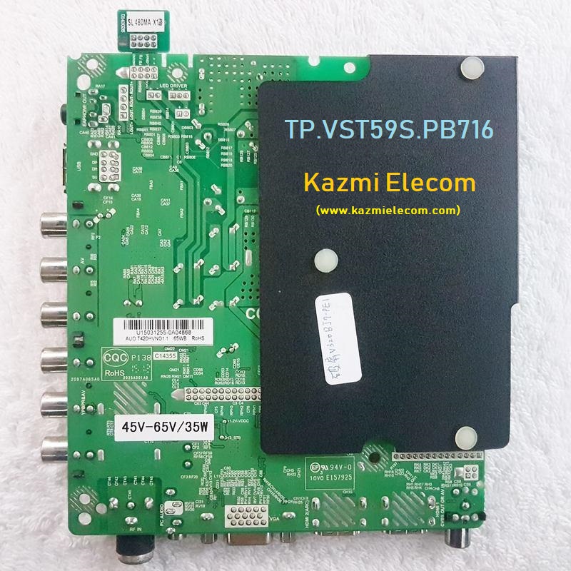 TP.VST59S.PB716 is an analog TV control board, which is suitable for the Asia-Pacific and Middle-East markets. TP_VST59S_PB716 is an integration board of power supply, LED driver, and TV board that is also called a combo board. TP-VST59S-PB716’s power part is an energy-efficient ultrathin DC-line switching power supply unit, with a max 85W/115VAC input, and 65 watts multi-output.