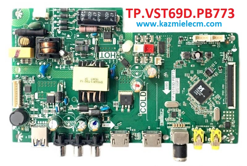 TP.VST69D.PB773 is a simple ATV Driver Motherboard designed for LCD/LED TVs. This board is suitable for the Asia Pacific and the Middle East markets. This is a Combo Board. The main power module and LED Backlight Inverter Circuit module and ATV Card are builtin into this motherboard.