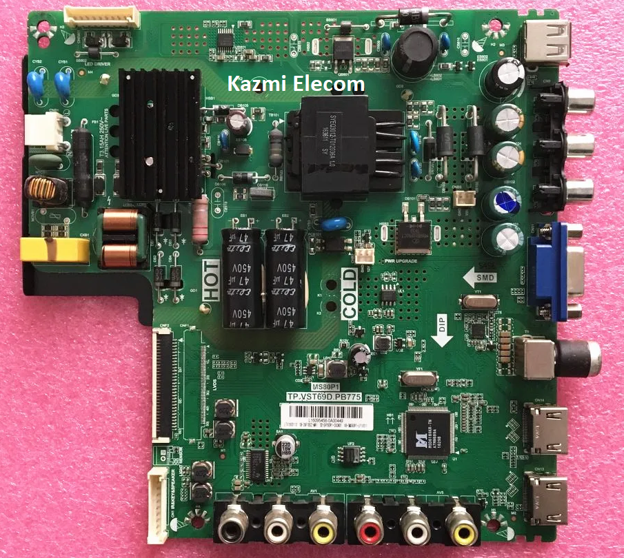 TP.VST69D.PB775 is a simple ATV Driver Motherboard designed for LCD/LED TVs. It is designed to support Full HD LCD/LED Panel Screens. This board is suitable for the Asia Pacific and the Middle East markets.This is a three in one Combo Board. The main power module and LED Backlight Inverter Circuit module and ATV Card are builtin into this motherboard. This board has all the features and connectivity ports as per the latest user requirements like HDMI input, USB interface, PC input, Component Input, TV, and Scart. Its USB interface can be used for updating software/firmware and for playing multimedia files as well. It can also support Earphone output. TP.VST69D.PB775 firmware files are given below for the technician’s support.