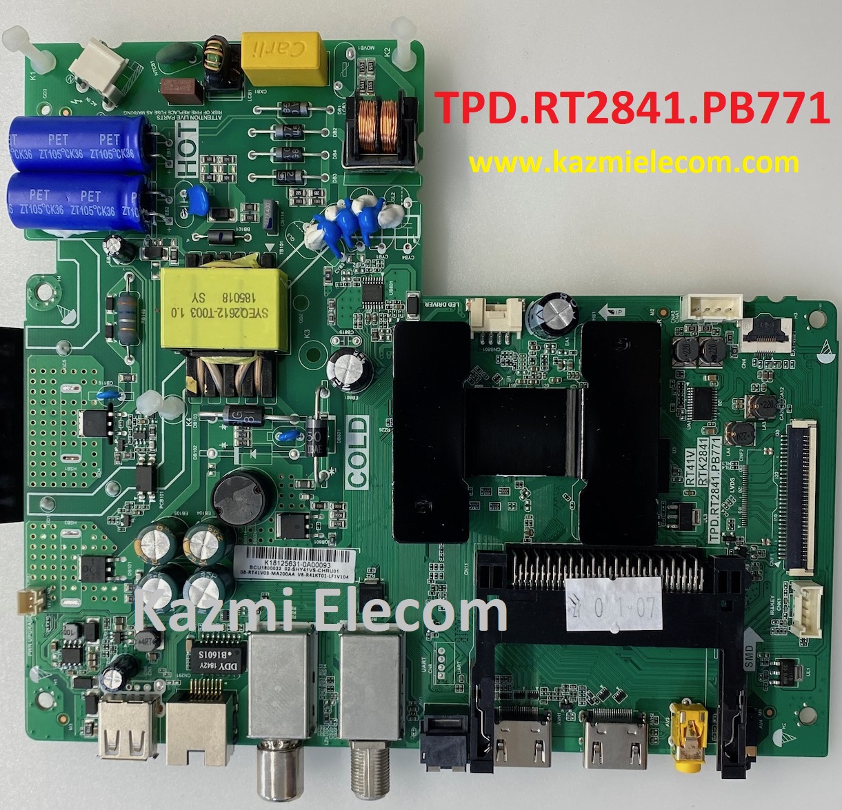 TPD.RT2841.PB771 is a smart Android Intelligent Network LCD/LED TV Board. It is suitable for the LVDS interface and supports more than 32-46 inches LED panels, maximum resolution of up to 1920×1080 FHD. TPD_RT2841_PB771 is a three-in-one (combo) board i.e. power card, backlight driver module, and ATV board is builtin in it. TPD-RT2841-PB771 has multiple input interface ports like USB, HDMI, AV, Scart port, and LAN port for wired internet connectivity. It is also built in a Wireless interface.