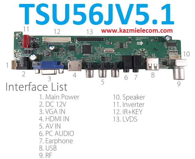 TSU56JV5.1 is a universal jumper board with multi-resolution panel screen-supported software.