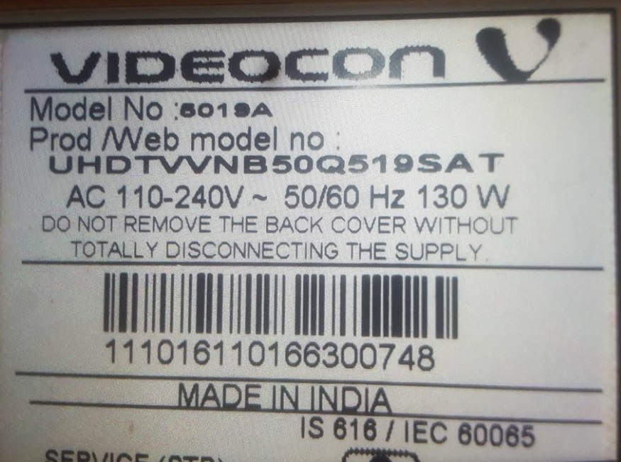 Tv model number VIDEOCON UHD (VNB55Q519SA T)